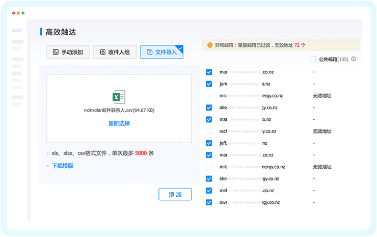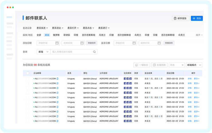 SG亚洲胜游外贸通内置自动发送系统,根据需求智能分析投递线路,抵达率达90%以上;联系人管理、重要度匹配、无效邮箱过滤等功能,触达、跟进更高效