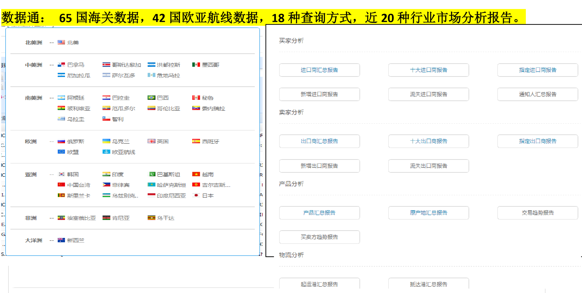SG亚洲胜游海关数据库,实时给予全球涵盖65国海关数据,42国欧亚航线数据,100+亿实时贸易数据,定位1.8亿全球企业信息,帮助您分析全球市场贸易趋势及分布,为您的产品快速、精准、科学地锁定热销国家和新兴市场。