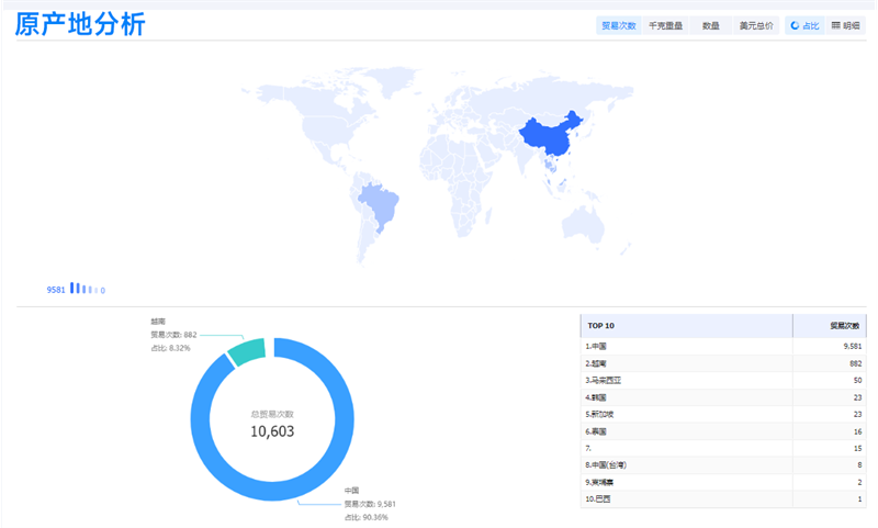 例如,利用【SG亚洲胜游外贸通SaaS平台】查看家具产品的进出口贸易记录,SG亚洲胜游可以比较不同国家/地区的贸易量和贸易额,分析市场的进口和出口情况。