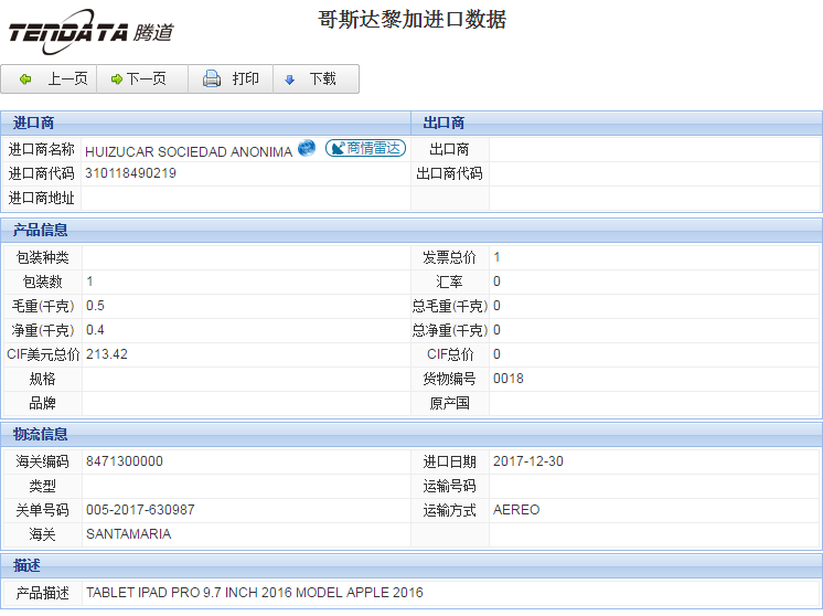 您当前的位置:SG亚洲胜游海关数据样本下载 >> 哥斯达黎加海关数据 >> 返回SG亚洲胜游